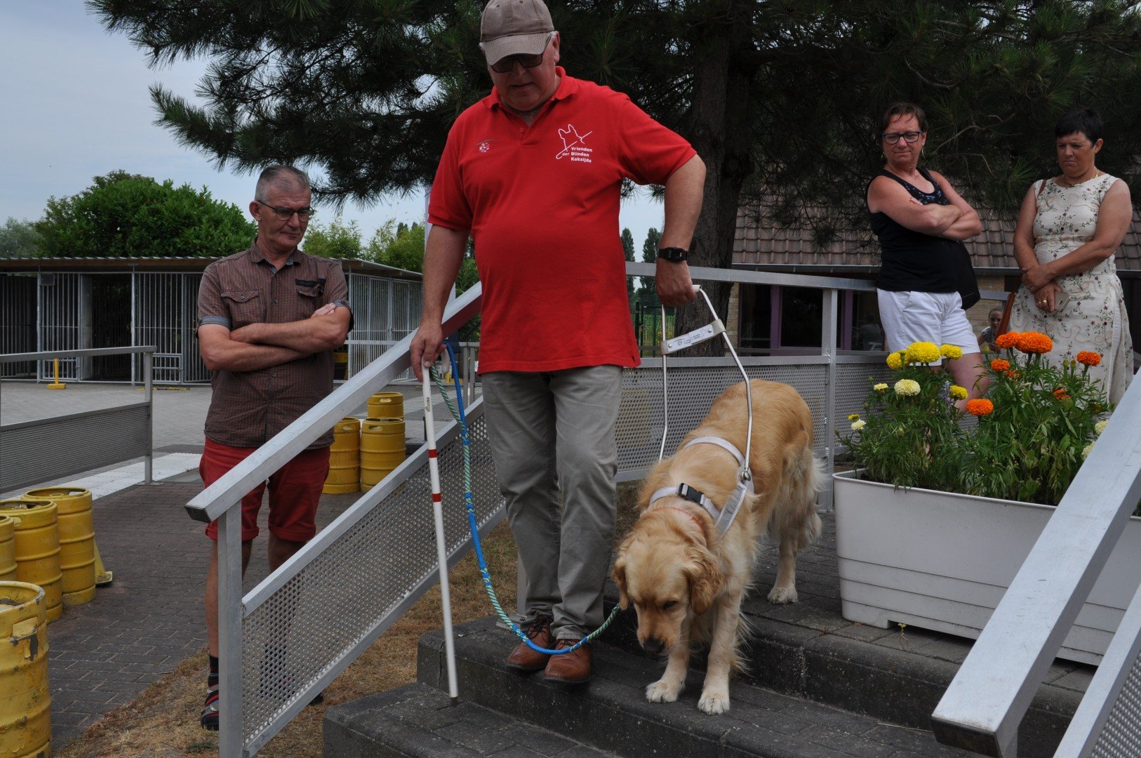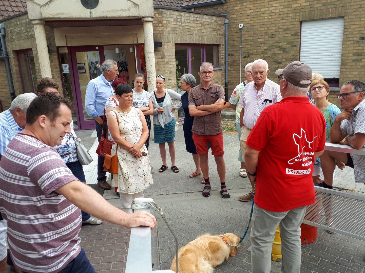 Jaarlijks kunnen ze een drietal honden plaatsen bij slechtzienden of blinden. Het is een heel intensieve opleiding van ongeveer 20 maanden en de hond moet aan tal van voorwaarden voldoen om in aanmerking te komen als blindegeleide hond. We kregen ook een kleine demonstratie.