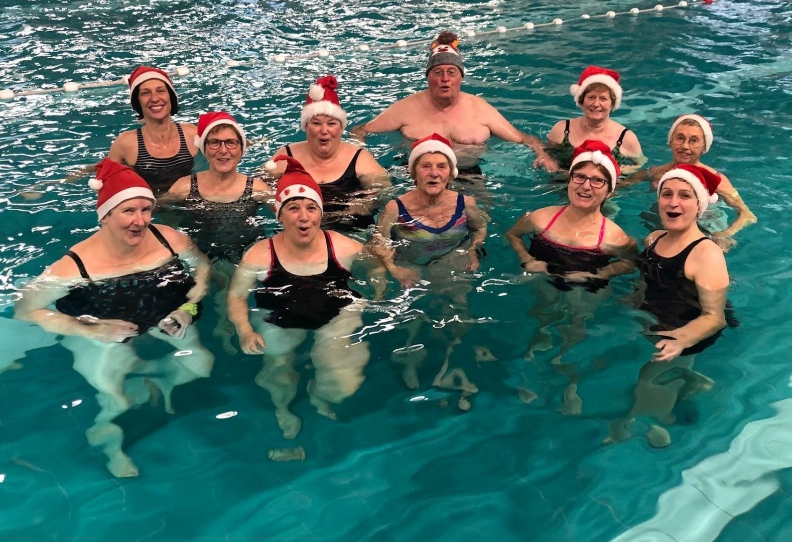 Na onze laatste aqua-gym van het jaar met de traditionele kerstmutsen, hadden we achteraf een gezellig en deugddoend samenzijn met een natje en een droogje. Voor herhaling vatbaar!